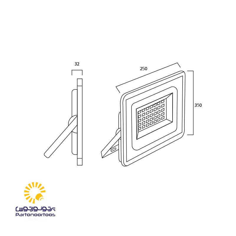 از آن‌جایی که درجۀ حفاظت این محصول، IP65 است، می‌توانید آن را با خیال راحت در فضای بیرون نصب کنید و بدون نگرانی در معرض باران، برف و رطوبت قرار دهید. ابعاد این محصول برابر با ۳۷۰x270x32 است که باعث می‌شود در هر مکانی به راحتی قابل استفاده باشد. هیتسینک خوب و پره‌ای تعبیه شده در پشت پروژکتور، باعث شده تا انتقال حرارت به خوبی انجام شود و در نتیجه طول عمر بالایی داشته باشد. بدنۀ این محصول، در دور رنگ مشکی و سفید عرضه می‌شود. این پروژکتور با رنگ نور سفید، آفتابی و سفید آفتابی (یخی) تولید و عرضه می‌شود.